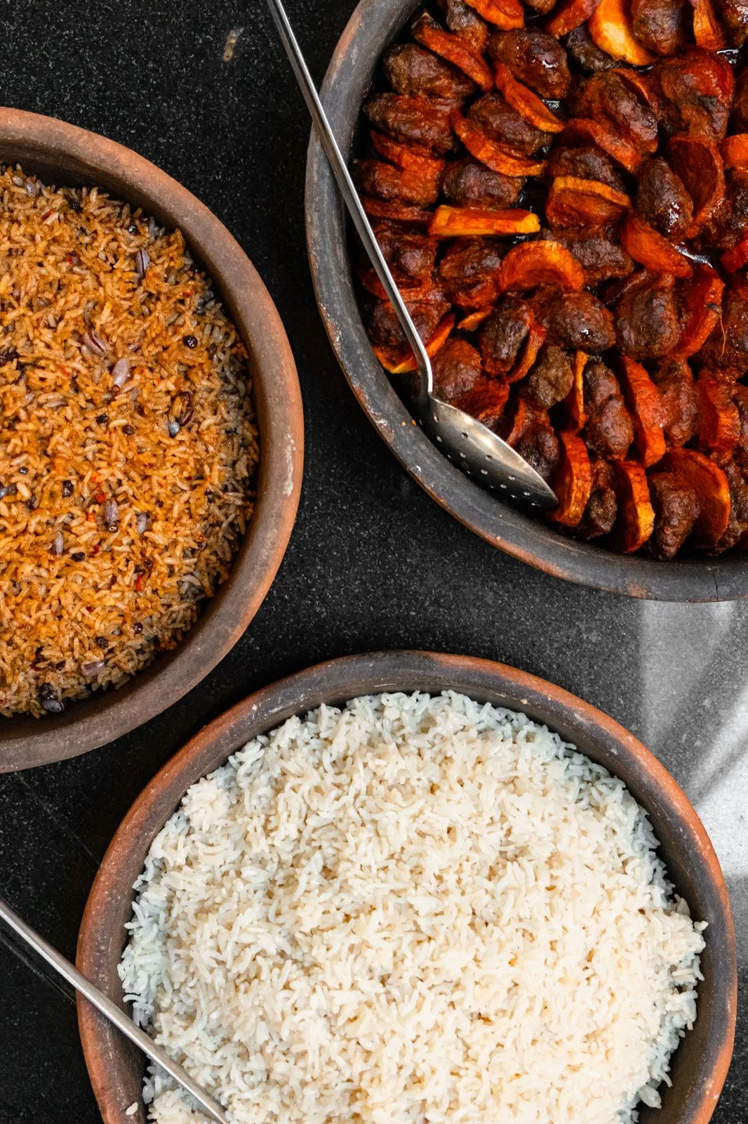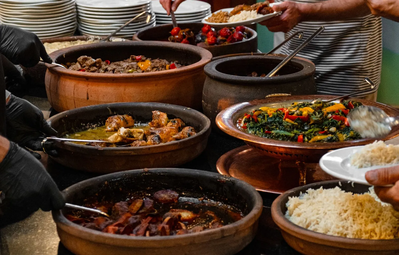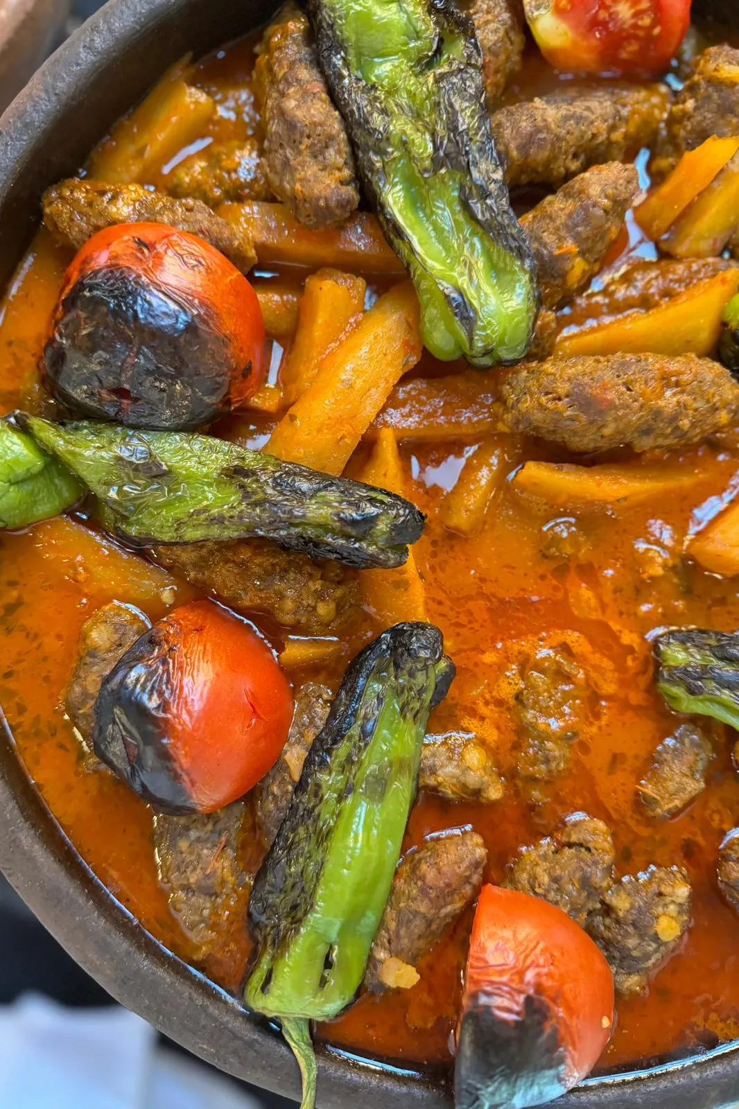 🍴 3 çeşit et (kuzu, dana ve köfte) ve 1 çeşit tavuk yemeği, Sebze yemeği, Güveçte bakliyat (Fasulye, Nohut)